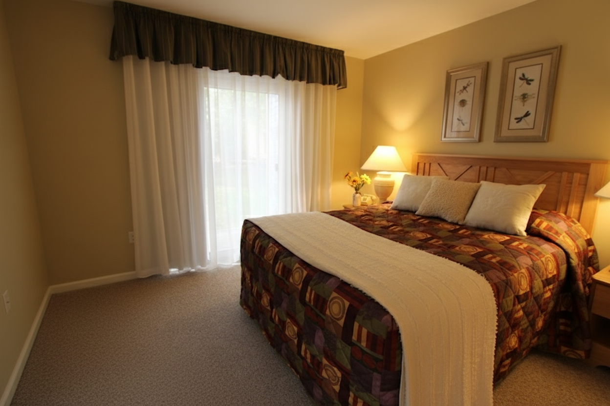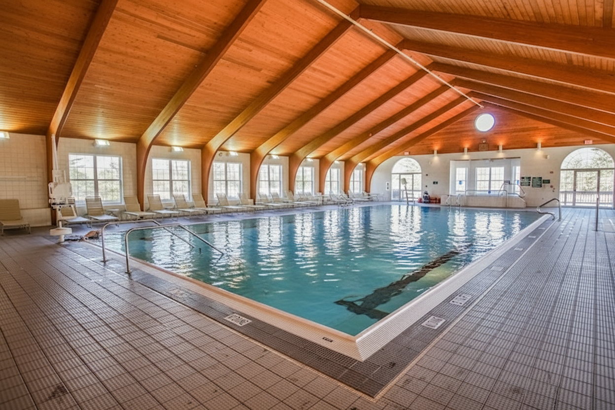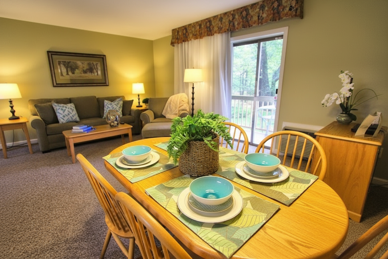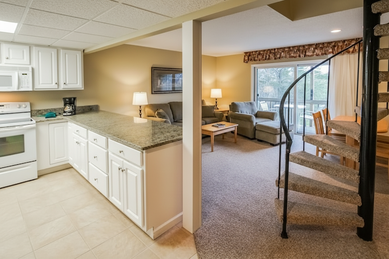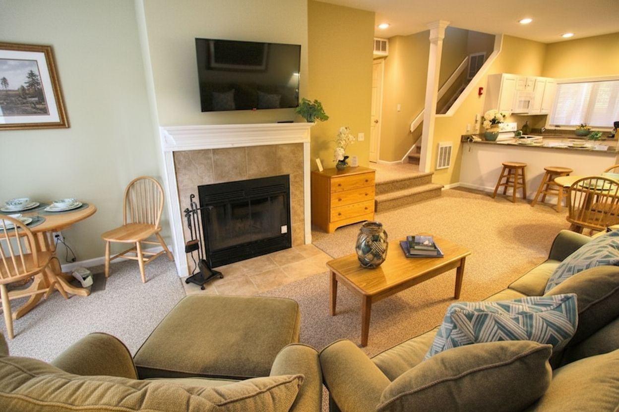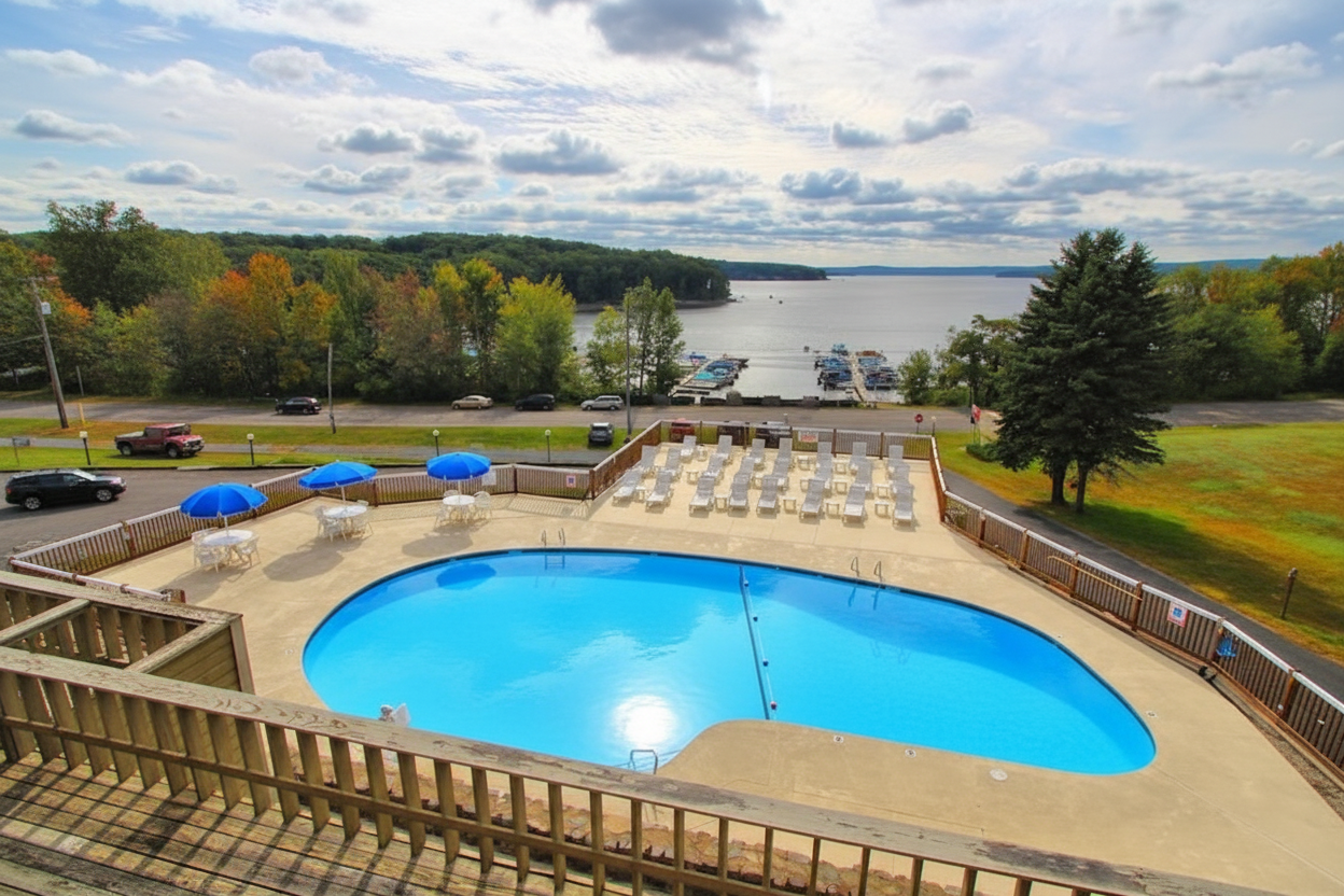 Nestled in the picturesque Pocono Mountains on Lake Wallenpaupack, Tanglwood Resort offers a relaxing getaway across nearly 600 acres. Features spacious one and two-bedroom condos with full kitchens, fireplaces, and whirlpool tubs in select units. Guests enjoy lake access with water sports, an 18-hole golf course, hiking trails, and seasonal skiing. The resort includes outdoor pools, recreation center with arcade and movie screening room, tennis courts, and fitness facilities. Perfect for families and couples seeking mountain retreat with outdoor activities.